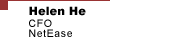 | Ms Helen He joined NetEase as Chief Financial Officer in August 1999. Ms He is in charge of cooperate financing activities and accounting management. From July 1999 to June 2000, under the leadership of Ms He and other senior management team, NetEase completed three rounds of private financing, an initial public offering and was successfully listed on NASDAQ.